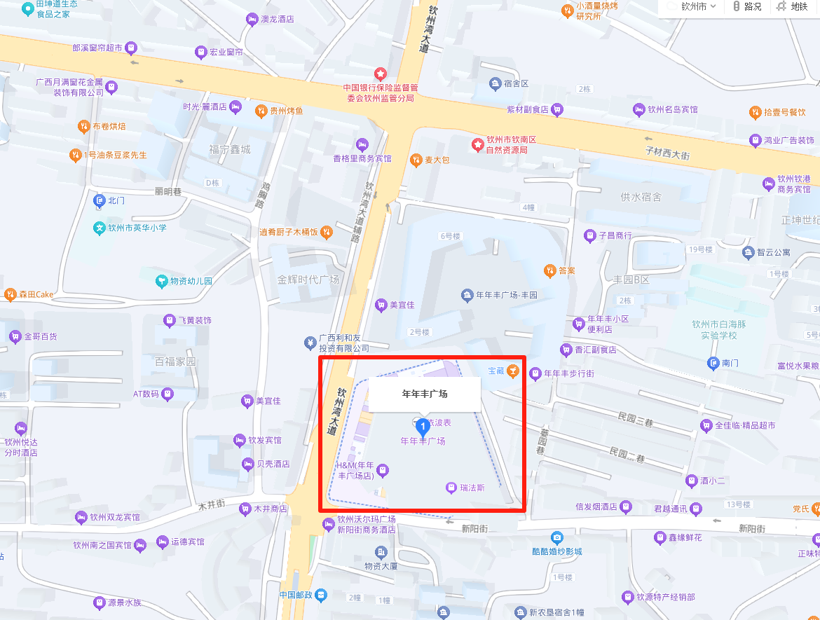欽州市欽州灣大道36號年年豐廣場shopping mall、1號樓B6商鋪,建筑面積7,521.91㎡ |