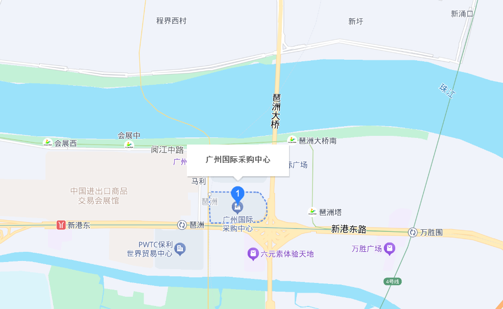廣州國(guó)際采購中心位于廣州市海珠區(qū)琶洲大道東2-8號(hào),地處琶洲會(huì)展商圈核心位置,周邊交通便捷,臨近地鐵8號(hào)線、11號(hào)線琶洲站,周邊有華南快速干線、新港東路等主干道;同時(shí),其緊鄰廣州國(guó)際會(huì)展中心(廣交會(huì)館)、保利世貿(mào)展館等展館,周邊還有香格里拉大酒店等五星級(jí)酒店及地鐵沿線的大型商場(chǎng)、影院等商業(yè)娛樂設(shè)施。